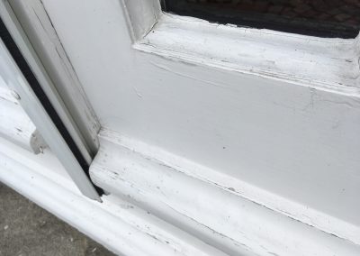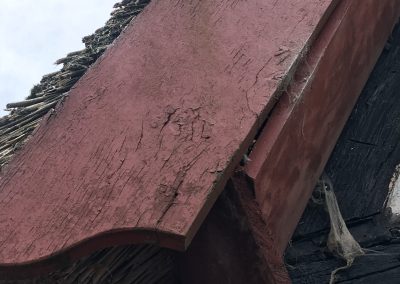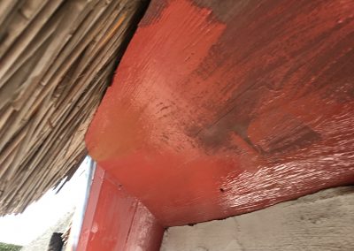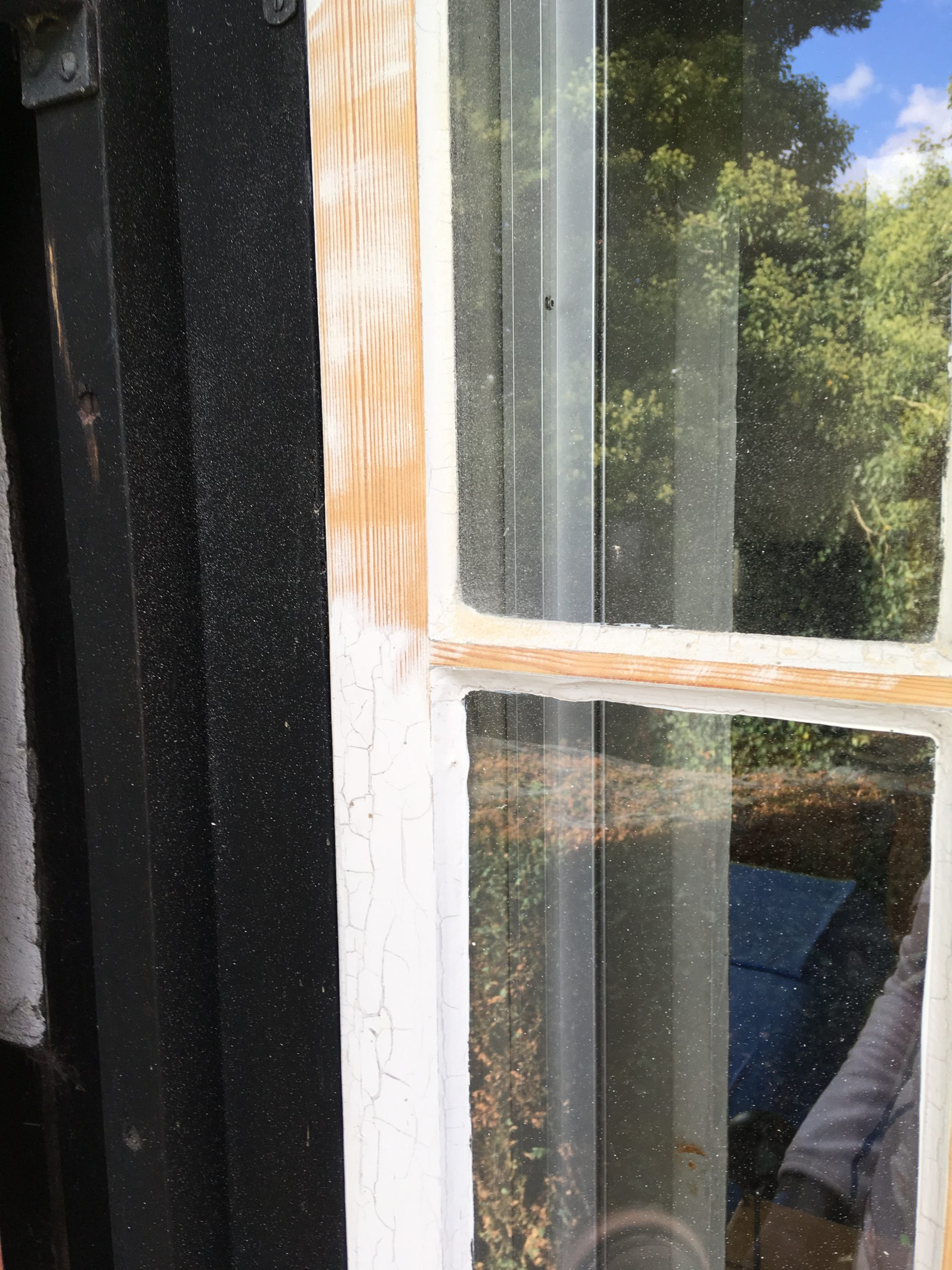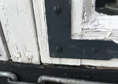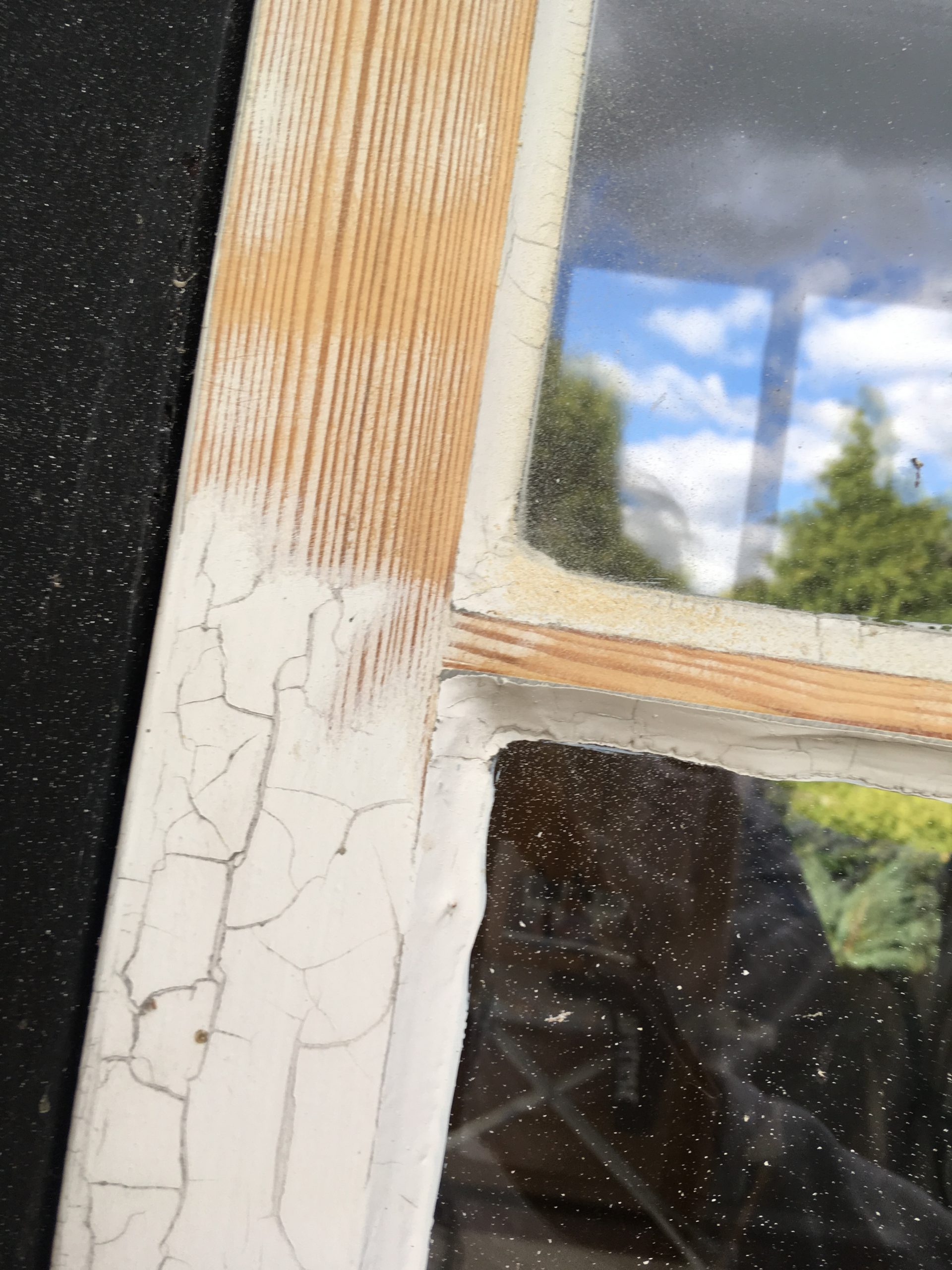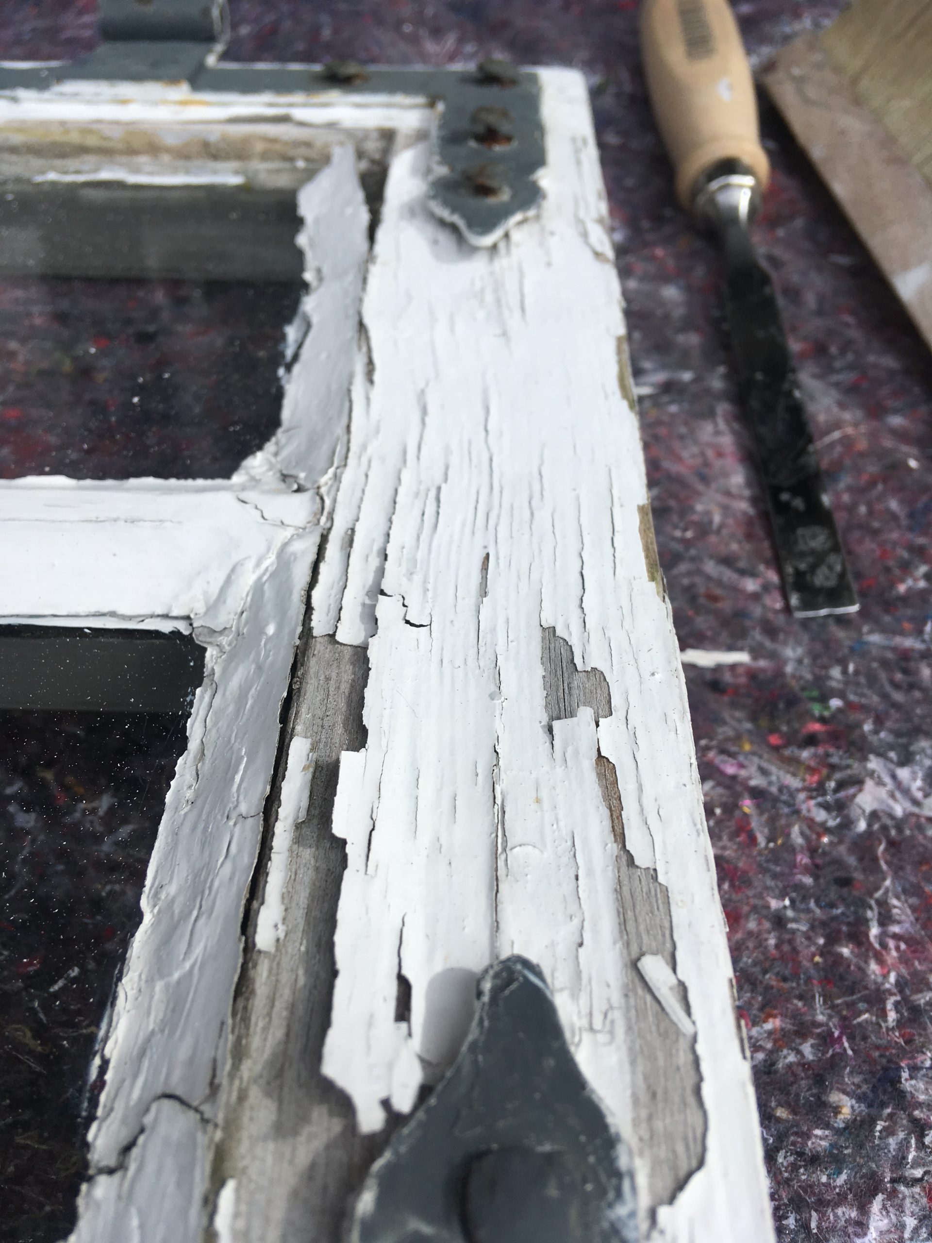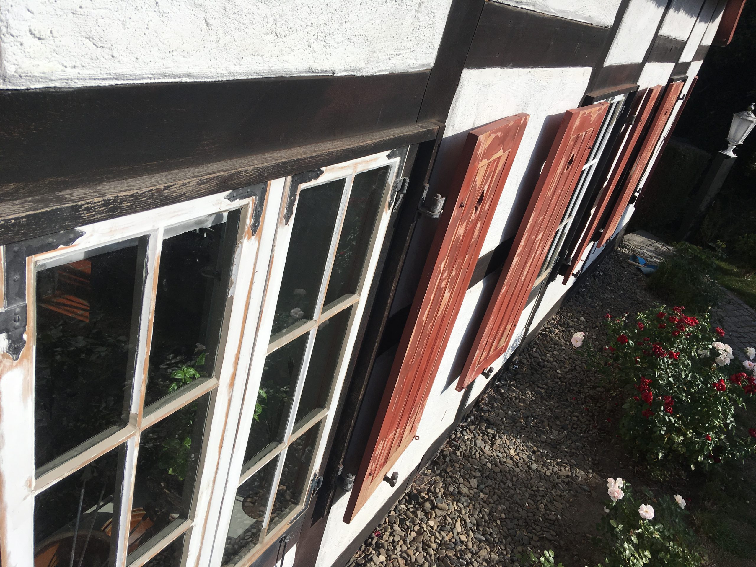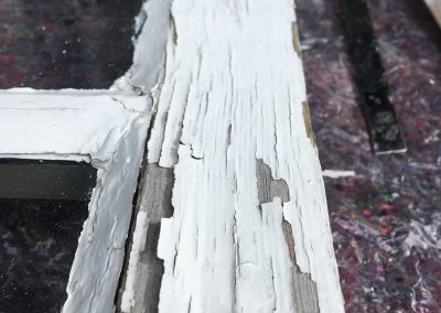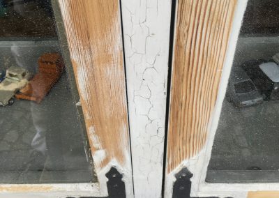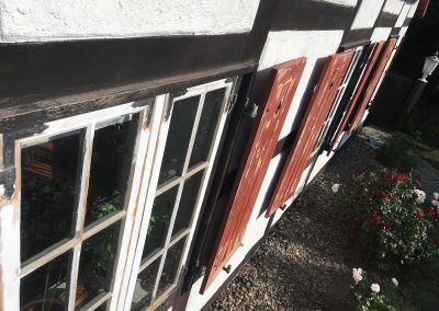 Mechanische Entfernung der Altbeschichtung und Neuaufbau mit einer Holzschutzlasur